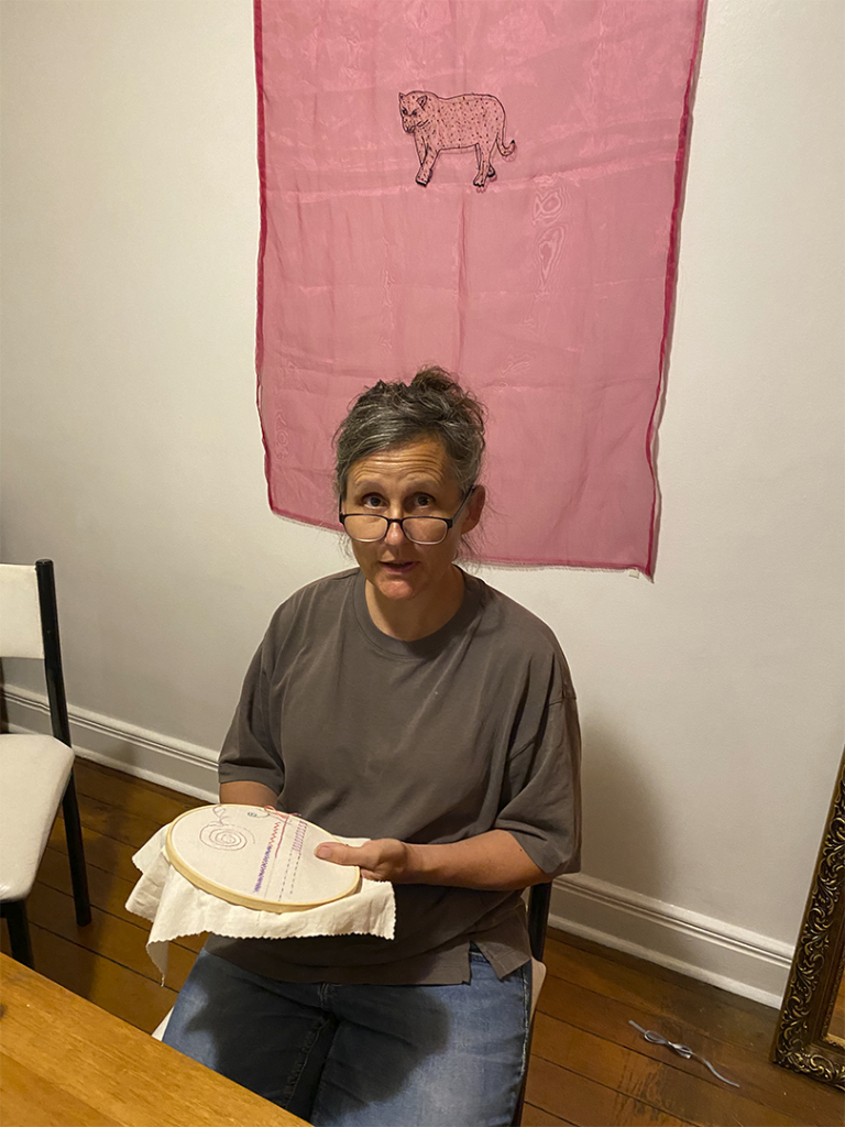 In this case, embroidery became not just a creative act to tell and share a story—but also a space to question materials, their origins, value, and transformation. The bear-creature became central to our collective parade, stitching together myth, memory, and resistance.
