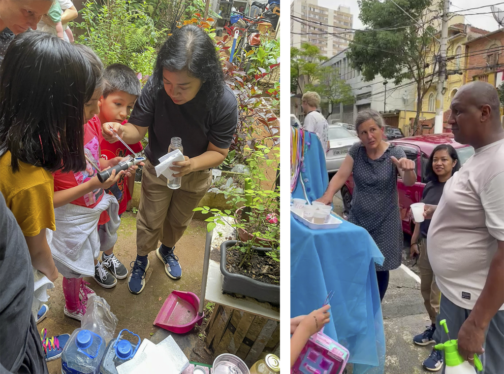 On October 12, 2023, Children’s Day in Brazil, we improvised a “Water Tasting Bar,” inspired by Floating University Berlin. We harvested herbs in the community garden in Bixiga and the participants of the workshop created their own drinks we then offered to people in the street.