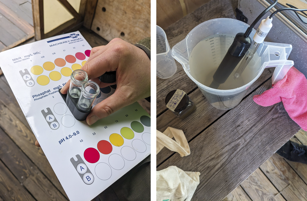 In July 2025, the environmental organization BUND (coordinator of the Water Network Berlin) visited Floating to carry out additional tests. These tests use basic kits, commonly found in aquarium or angler shops, which are affordable, accessible, and easy to use. This approach makes water monitoring a collective, ongoing effort bringing citizen science into everyday practice.